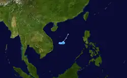 A tropical disturbance trekked across the Philippines in mid June, upon entering the South China Sea a depression formed. The depression was upgraded to Tropical Storm Nathan on June 16. Tropical Storm Nathan reached peak intensity of 65 mph (100 km/h) shortly before striking Hainan Island. In the South China Sea the Chinese ship Tien Fu sank killing 4 people. In southern China torrential rains caused flooding in Guangdong Province killing 10 people, two people drowned in Macau due to high waves. Tropical Storm Nathan then continued northwestwards making a final landfall near the Vietnam/China border.[3] The storm caused approximately 1.9 million RMB in damages (US$346,000).[5]