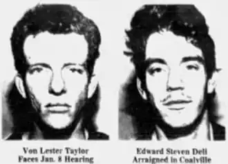 On December 22, 1990, at a mountain cabin in Oakley, Utah, two parolees, Von Lester Taylor (born March 26, 1965) and Edward Steven Deli (born December 29, 1968), broke into a remote cabin to commit burglary. The Tiede family, who had been staying at the cabin for the holiday season, were attacked by the pair after catching them red-handed. In the ensuing violence, two women, 76-year-old Beth Potts and her 49-year-old daughter Kaye Tiede, were shot and killed, while Kaye Tiede's 51-year-old husband Rolf Tiede was wounded in the shooting. The Tiedes' daughters, 16-year-old Tricia Tiede and 20-year-old Linae Tiede, were kidnapped by the pair, who both set the cabin on fire, and fled the scene. However, the men were ultimately captured by the police.