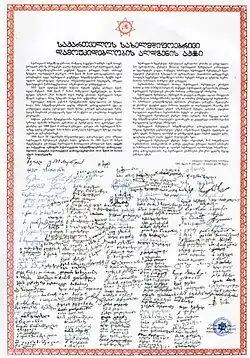 The Act of Restoration of Georgian Independence signed on 9 April 1991.