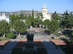 Since the end of September 1991, Tbilisi was a divided city. The Gldani, Nadzaladevi, and Didube neighborhoods, as well as the south and center parts of Rustaveli Avenue (housing government buildings) remained under the military control of Zviad Gamsakhurdia, who had started to isolate himself within the Supreme Council building. Neighborhoods located between the Marx-Engels-Lenin Institute (29 Rustaveli Ave.) and the Tbilisi State University (1 Chavchavadze Ave.) were loyal to the opposition, while the Mkhedrioni militia used the rest of Chavchavadze Avenue as its training ground.[33] In the meantime, the neighborhoods of Vake and Saburtalo, populated by members of the Soviet intelligentsia, remained neutral.[33] Each side was commanding 1,000 to 3,000 soldiers.[33] Soviet Transcaucasian Military District, still based near Tbilisi, used the internal chaos to sell weapons to both sides in order to worsen the situation.[35]