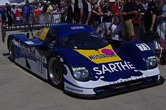 The third factory team to build a car for the 3.5-litre formula was Peugeot. Following a successful time in rallying, they aspired to emulate their compatriot company Renault and to win in endurance racing. The company had supported the WM team in their quest to break 400 kp/h at Le Mans. The Peugeot works team had raced at Le Mans previously, in 1926, when they were the dominant team in motorsport. The new Peugeot 905 had been designed and built at the Peugeot Talbot Sport factory near Paris led by André de Cortanze, who had designed the Renault winners.[21][22] The monocoque chassis and shell was made of advanced composite and tested at the Dassault aircraft wind-tunnel. Jean-Pierre Boudy headed the engine team, having already worked with the Renault team. The V10 was angled at 80 degrees with four valves per cylinder, generating 600 bhp with a Magneti-Marelli engine-management system. An innovative transaxle ran the first and second gears through the front wheels, while the third to sixth went to the rear.[21] The car was unveiled in the middle of 1990 and ran in the final two races of the season. Two cars ran this season, managed by team director Jean Todt. Mauro Baldi and Philippe Alliot caused a sensation by winning the opening round at Suzuka and Baldi was the reigning World Drivers Champion (with Sauber-Mercedes) alongside Jean-Louis Schlesser. The second car was run by former F1 world champion Keke Rosberg with Yannick Dalmas, matching up experience with young French F1 prospects. The team were joined by French drivers Jean-Pierre Jabouille and Pierre-Henri Raphanel.[21][19]