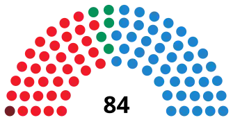Last election 34 seats, 38.3%[a] 32 seats, 34.0% 18 seats, 19.4%