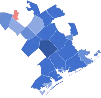 County results Laughlin: 50–60% 60–70% 70–80% 80–90% Garza: 50–60%
