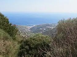 ![]() Mountains north of Agios Kirykos, where the fires originated | |