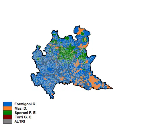 Roberto Formigoni (member of the right-wing of the Italian People's Party, on the list of Forza Italia) was elected President of the Region, defeating Diego Masi (Segni Pact) and Francesco Speroni (Northern League).