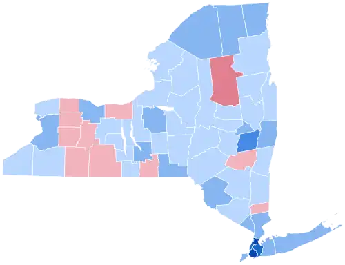 Clinton improved dramatically on his 1992 showing in New York, when he had won the state with a 49.7% plurality. 1996 firmly entrenched New York's status in the modern era as a Democratic stronghold, rather than the swing state it had been in the 20th century. Many historically powerfully Republican upstate counties were won by the Democratic ticket: As of the 2024 presidential election, this is the last time for a Democrat to carry Cattaraugus, Chenango, Delaware, Fulton, Jefferson, Ontario, Schuyler, Yates, Chemung, Herkimer, Lewis, Oneida and Schoharie counties.[1]