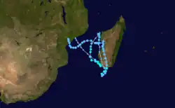 During the year, the Météo-France office on Réunion (MFR) issued warnings for tropical systems in the region as the Regional Specialised Meteorological Centre.[1] In the year, MFR tracked tropical cyclones south of the equator from the coast of Africa to 90° E.[2] The Joint Typhoon Warning Center also issued warnings in an unofficial capacity.[3]