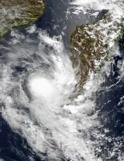 A northerly flow produced a low-pressure area on February 1 in the central Mozambique Channel. Influenced by the monsoon trough, the system developed a distinct circulation on February 3 near Juan de Nova Island, becoming a tropical disturbance and bringing gusts of 50 km/h (30 mph) to the island. The convection organized around the circulation while moving eastward. Conditions were favorable for further strengthening, although the system made landfall in western Madagascar between Maintirano and Morondava on February 5. After progressing slightly inland, the disturbance looped and turned to the south. The circulation became difficult to locate, but surface observations helped track the circulation southward through the country. Late on February 8, the system reached the open waters south of Madagascar and quickly redeveloped convection southeast of the center, displaced by wind shear, and it was reclassified as a subtropical depression.[1] The JTWC briefly classified it as Tropical Cyclone 21S on February 9 with winds of 65 km/h (40 mph).[3]