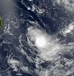 The season had the latest start in 30 years, with the first depression forming in January.[1] The first storm, Anacelle, was not named until February 8, which retains the record for the latest date of the first named storm.[4] For the early portion of the season, there were unusually quiet conditions across much of the basin, along with higher than normal pressure. The Intertropical Convergence Zone (ITCZ) associated with the monsoon only became active in February, allowing tropical cyclogenesis to occur more frequently. There were six tropical storms during the season, of which only one attained tropical cyclone status; these are below the averages of 9 and 4, respectively. No storms attained intense tropical cyclone status. The season's low activity contrasted that of the previous season, which was much more active. There were 18 days in which a storm was active, the lowest since 1982–83. An ongoing El Niño was evident during the season.[1]