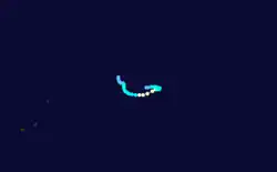 After an extended period of inactivity, the ITCZ produced two areas of convection – one was located about 550 km (340 mi) south-southwest of Diego Garcia, and the other was located 900 km (560 mi) east-southeast of that system. Both were classified as tropical disturbances on April 7 and subsequently interacted with each other.[1] The eastern system, classified as Tropical Cyclone 33S,[3] quickly dissipated due to strong wind shear and was absorbed into the western system. The disturbance continued to organize and developed a central dense overcast over the center, becoming Tropical Storm Gemma on April 8. A ridge and a trough steered the storm to the southeast and later to the east.[1] On April 9, Gemma attained peak winds of 85 km/h (55 mph), according to the MFR, while the JTWC estimated 130 km/h (80 mph) winds.[19] As with most other storms in the year, increased wind shear caused the storm to weaken. The weaker system isolated it from the upper-level steering, causing the circulation to loop southwestward. On April 16, Gemma dissipated far to the east of Rodrigues.[1]