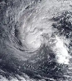 A tropical wave emerged into the Pacific Ocean on July 27. It organized into a depression July 30 and was named Tropical Storm Guillermo the next day. It quickly intensified, reaching hurricane status on August 1. Guillermo became a major hurricane on August 2. It reached Category 4 intensity on August 3. Continuing to rapidly intensify, Guillermo attained Category 5 strength August 4. The tropical cyclone peak intensity was 919 mbar (hPa) and 160 mph (260 km/h).[20]