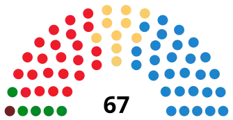 Last election 27 seats, 37.5% 19 seats, 25.7% 14 seats, 20.4%