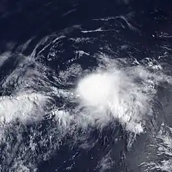 A tropical wave moved off the coast of western Africa into the Atlantic Ocean on August 29. It continued to move westward through the tropical waters of the Atlantic into the Caribbean. It still remained a tropical wave as it moved over Central America and began to acquire more convection and organization, from September 10 through September 11. Visible satellite imagery showed low level circulation and more organized deep convection as it became a tropical depression on September 17, while located about 475 miles (764 km) south-southeast of the southern tip of the Baja California Peninsula.[30]