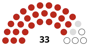 The results were a sweeping victory for the Communist Party of South Ossetia, which won 27 of the 33 seats with over 80% of the vote. Their leader, Stanislav Kochiev would be elected the Speaker of Parliament with 22 votes. The result was a major blow to the aspirations of independent President Lyudvig Chibirov, who was accused by his Communist opposition of working with the Georgian government to reach an agreement under which South Ossetia would rejoin Georgia, on the condition of local autonomy and an independent legislature from Tbilisi, similar to the South Ossetian Autonomous Oblast. This accusation, especially with most voters being veterans of the 1992 war, made Chibirov very unpopular. The four seats reserved for ethnic Georgians remained vacant, as the Georgian population boycotted the elections.[3]