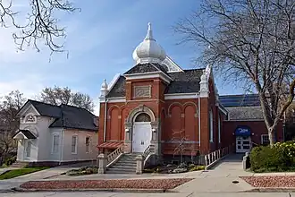 It was built in 1896. Its architecture is significant in American history as reflecting changes imposed upon the Church of Jesus Christ of Latter-day Saints (LDS Church) by outside influences. Pressure included various Federal enforcement efforts following upon the Edmunds–Tucker Act of 1877, which outlawed polygamy. In effect, the LDS Church capitulated, and sought to adopt different values in conformity with worldwide ones. The meetinghouse was designed by architect Robert Bowman and represented a "totally out of character" change in style; it includes an "oriental, Byzantine, or German Renaissance-inspired onion dome". It was no longer a church when listed on the National Register of Historic Places in 1976.[2]