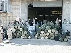 Fore exceptionally meritorious service during assigned mission in support of Operation Iraqi Freedom from 2 August 2004 to 1 February 2005. I Marine Expeditionary Force (I MEF) (Reinforced) conducted a coordinated campaign across a 400-mile arc of the Euphrates River Valley to eliminate insurgent control over the key cities of An Najaf and Al Fallujah and the remainder of the local population in the I MEF Area of Responsibility. The battle for An Najaf and Al Fallujah were the largest U.S. led urban operations since the Vietnam War. Both battles saw the introduction of new and innovative tactics, techniques, and procedures which became ke to I MEF's success. Throughout 24 days of intense conflict in An Najaf, the Marines conducted destruction raids on insurgent strongholds, captured weapons caches, and engaged in fierce close-quarter battle. During this operation, I MEF killed more that 1,500 enemy insurgents while simultaneously preserving the sacred Imam Ali Shrine and Mosque Complex. In response to the violent insurgent actions in Al Fallujah, a coalition force of 12,500 led by 1 MEF, boldly breached the city's fortifications and destroyed a heavily armed and well-entrenched fanatical enemy. Countless across of individual bravery in Al Fallujah resulted in more than 2,000 enemy killed or captured as the Marines, Soldiers, and Sailors fiercely fought and cleared the city, house by house. By their outstanding courage, resourcefulness, and aggressive fighting spirit in combat against the enemy, the officers and enlisted personnel of I Marine Expeditionary Force (Reinforced) reflected great credit upon themselves and upheld the highest traditions of the Marine Corps and the United States Naval Service. -- Department of the Navy, MARADMIN Active Number: 074/07[4]