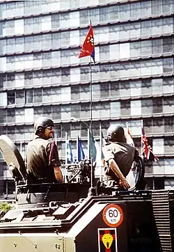 The 1st Field Artillery Regiment was established on 21 February 1836, when the Regiment of Artillery was split up into three new regiments. The regiment participated in both World Wars. During the Second World War, it remained active after the Eighteen Days' Campaign, the campaign of the Belgian army in May 1940 when Belgium was invaded by Germany. The First Belgian Battery, which was created in the United Kingdom in February 1941, participated as part of the Brigade Piron in the Battle of Normandy and in fights in Belgian and Dutch Limburg during the liberation of Western Europe.[1] For this reason, the regiment's first battery, A Battery, is known as Batterie Libération (French for "Liberation Battery").