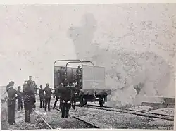 Charles Gervaise Boxall (1852–1914), a Brighton-born London solicitor, was commissioned as a 2nd Lieutenant in the 1st Sussex in 1873 and rose to become its commanding officer (CO) in 1893. In 1884 he published The Armoured Train for Coast Defence in Great Britain, outlining a new way to employ heavy artillery. No 6 Garrison Company of the 1st Sussex AVC was formed entirely from railway workers, and in 1894 they manned an Armoured train constructed in the workshops of the London, Brighton and South Coast Railway (of which the unit's Honorary Colonel, Sir Julian Goldsmid, was a director).[4][6][11]