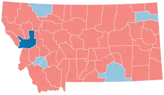 | Missoula | 23,989 | 45.73% | 26,983 | 51.44% | 1,482 | 2.83% | -2,994 | -5.71% | 52,454 |