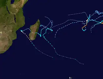 Météo-France's meteorological office in Réunion (MFR) – the official Regional Specialized Meteorological Center for the South-West Indian Ocean – tracked and named all tropical cyclones from the east coast of Africa to 90° E, and south of the equator.[1] The Joint Typhoon Warning Center (JTWC), which is a joint United States Navy – United States Air Force task force that issues tropical cyclone warnings for the region, also issued advisories for storms during the season.[2]