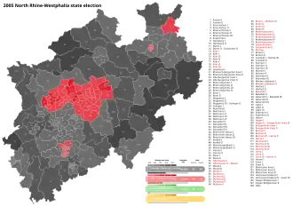 Immediate coverage of the election was overwhelmed by its impact on federal politics: only half an hour after the polls closed, first SPD chairman Franz Müntefering and then Chancellor Gerhard Schröder announced the government's intention to seek an early dissolution of the Bundestag. A federal election had originally not been due until September of 2006, but Schröder and Müntefering felt the need for a renewed mandate for the government's agenda in light of a string of defeats on the state level, of which North Rhine-Westphalia was the most significant as it was a longtime stronghold of the SPD. The result also marked the defeat of the last incumbent SPD-Green state government.[1] This led to a knock-on effect as Schröder quickly brought and deliberately lost a motion of confidence in the Bundestag and subsequently dissolved it. With the election looming, parties were forced to accelerate the selection and announcement of candidates; Angela Merkel was announced as the CDU/CSU's Chancellor candidate just a week after the election in North Rhine-Westphalia.[2] These developments greatly overshadowed the state election and its local consequences, which receded into the background of coverage.