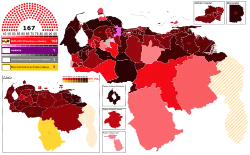 The results were a very important issue in Venezuela, since a two-thirds majority in parliament was needed to change the constitution and the elections gave the Fifth Republic Movement a sufficient majority to change the constitution with or without the support of other political parties.[15][16]