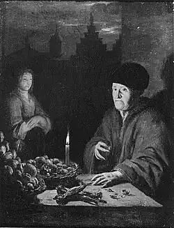 NK3291 | Navolger van G. Dou | Groenteverkoopster bij kaarslicht Archived 2020-10-14 at the Wayback Machine | 1439 | depot ICN |