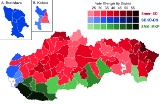 Parliamentary elections were held in Slovakia on 17 June 2006.[1] Direction – Social Democracy emerged as the largest party in the National Council, winning 50 of the 150 seats. Its leader Robert Fico was appointed Prime Minister on 4 July 2006, leading a three-party centre-left populist coalition.[2]