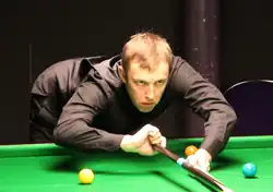 Robertson won the first five of the six frames with breaks of 98, 76 and 71 as Higginson compiled a break of 114 in the second frame.[44] Although Higginson clinched the seventh frame, Robertson produced a break of 74 in the eighth to conclude the first session 6–2 up. In the second session the first six frames were won by Higginson from breaks of 54, 100, 97, 64 and 81 en route to a 8–6 lead and outscored Robertson 425–49. This left Higginson within a solitary frame of winning the first ranking tournament of his career.[45] However, Robertson compiled a clearance of 92,[46] and breaks of 32 and 59 in frame fifteen to force the match to a final frame decider. Robertson maintained his composure to win the tournament and the match after Higginson missed a plant at the start of the last frame.[45]