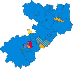 The Conservative Party took overall control of the council with a majority of 37 councillors.[2]