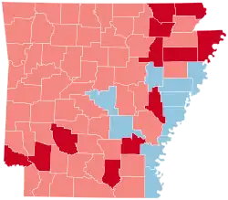 Arkansas was won by Republican John McCain by a 19.86% margin of victory, a much greater margin than George W. Bush attained in 2004, despite a large national Democratic trend. Prior to the election, all 17 news organizations considered this a state McCain would win, or otherwise a red state. The state trended dramatically Republican in 2008, as McCain received over 4% more of the statewide popular vote than Bush earned in 2004 and more than doubled his margin of victory. Only five counties swung more Democratic in 2008, and the vast majority of counties swung heavily Republican, some by as much as 30%.[1] Of the ten counties with the largest percentage swing to the Republicans in the U.S. during this election, six of them were located in Arkansas.[2]