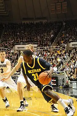 Harris was named as a finalist for the 2010 Bob Cousy Award and a Midseason Top-30 finalist for the 2010 John Wooden Award.[66] Novak was a District 4 first-team 2009 Academic All-District Men's Basketball Team selection as selected by ESPN The Magazine and College Sports Information Directors of America.[67][68] Sims and Harris were both selected as second team National Association of Basketball Coaches All-District 7.[69] Both the Big Ten coaches and the media selected Sims and Harris to the 2nd and 3rd All-conference teams, respectively. Sims was also recognized as Michigan's Big Ten Sportsmanship Awards honoree.[70][71] Harris and Novak were selected as Academic All-Conference performers.[72][73] Neither Harris nor Sims was drafted in the 2010 NBA draft.[74]