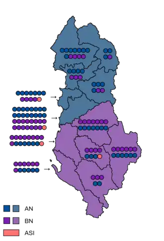Shortly before the election, the ethnic Greek Unity for Human Rights Party switched their allegiance, abandoning their alliance with the Democratic Party of Albania to join the Socialist Party of Albania.[6] The Party for Justice and Integration, a party representing the interest of ethnic Albanians whose properties in Greece were seized after WW2, joined the coalition Alliance of Change.