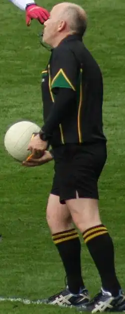 Marty Duffy of Sligo was appointed match referee for the final.[38][39] The decision led to comment from former managers of both counties involved in the final, Mick O'Dwyer who expressed his belief that the choice of referee was based on "politics" and Billy Morgan who thought that Pat McEnaney ought to have been appointed referee instead.[38][39][40] The GAA officially refused to offer a response to the two men.[41] Liam and Sam in the Irish Independent compared the "pre-emptive" criticism of the referee to a scenario where the referee were to question the manner in which one of the teams play the sport or express dismay that a better team should have qualified for the final instead.[42] Radio Kerry analyst and former referee Weeshie Fogarty expressed his dismay at the criticism of Duffy, commenting: "It's bad enough to referee big games in Croke Park and see your name being castigated in the papers and torn asunder the following week. But by God, when it happens before the game, that is a new trend to me".[43]