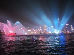 The 2009 East Asian Games opening ceremony was held on 5 December 2009 at Tsim Sha Tsui, Hong Kong. The opening began at 8 p.m. at the Hong Kong Cultural Centre on a floating stage set up at Victoria Harbour. The production team was the same one that ran the 2008 Beijing Olympics opening ceremony.[1][2] The ceremony involved 44 decorated vessels and cost HK$40 million (about US$5 million) to stage, lasting 90 minutes.[3][4] Tickets to the opening ceremony was sold at HK$1000.[2]