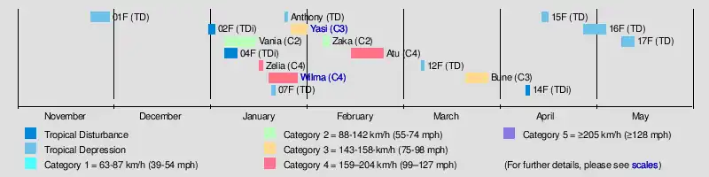 51. ^ "TROPICAL DISTURBANCE ADVISORY NUMBER A12 for TROPICAL CYCLONE WILMA". Fiji Meteorological Service. Archived from the original on July 21, 2012. Retrieved January 25, 2011.