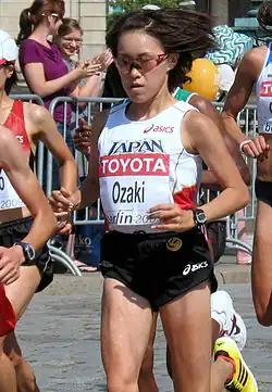 Japan's Yoshimi Ozaki (shown running in the 2009 World Championship Marathon) led her team to a sixth consecutive team medal.