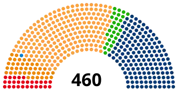 Last election 41.5%, 209 seats 32.1%, 166 seats Did not exist