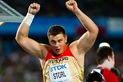 David Storl made a major improvement to achieve a new personal best of 21.50, leading the qualifying round by 45 cm (a foot and a half).