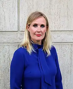 - Dr. Herdís Thorgeirsdóttir,[7] a lawyer and professor of constitutional law and human rights at Bifröst University, announced her candidacy on 30 March.[8] She called a press meeting that day and said her campaign would be an experiment on democracy, whether it was possible to run without the backing of powerful financial actors and political parties. She referred to the financial collapse in 2008 and the Parliamentary investigative report which concluded that the main reason for the collapse were the close ties between politics and the corporate world seriously damaging the democratic process. Her candidacy was an attempt to increase accountability in the democratic process by not accepting funding from corporations as it is crucial in the struggle against prevailing corruption to limit the influence of money in elections. She is the President[9] of the European Women Women Lawyers' Association and Iceland's representative at the Venice Commission of the Council of Europe.
