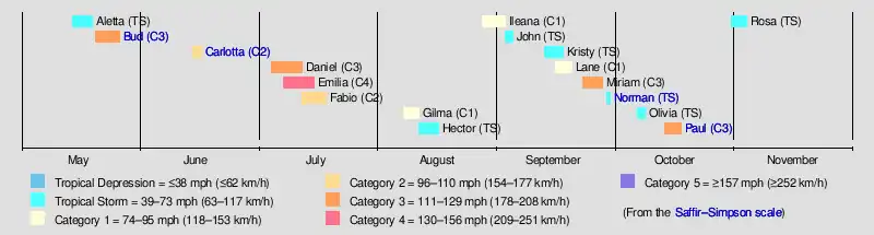 Hurricane Paul (2012)Tropical Storm Norman (2012)Hurricane Carlotta (2012)Hurricane Bud (2012)Saffir–Simpson scale