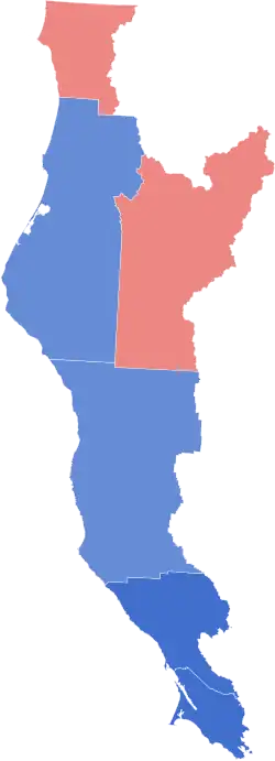 | Republican | 2,072,433 | 41.87% | 98 | 46 | 44 | |