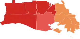Runoff parish results Boustany: 40–50% 50–60% 60–70% 70–80% Landry: 40–50% 50–60% 60–70% |