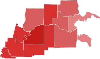 A new congressional map was passed by the Missouri General Assembly on April 27, 2011.[2] The map was vetoed by Democratic Governor Jay Nixon on April 30,[3] but Nixon's veto was overridden by the General Assembly on May 4, making the plan law.[4] The map effectively eradicated the former 3rd district, which had been represented by Democrat Russ Carnahan since 2005, splitting it between the districts represented by Republicans Blaine Luetkemeyer and Todd Akin and Democrat William Lacy Clay, Jr. The bulk of the old 9th district became the new 3rd district.[2]