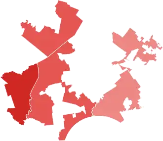 Pennsylvania's 2nd congressional district includes predominantly African American sections of the city of Philadelphia—West Philadelphia, North Philadelphia, and Northwest Philadelphia—in addition to parts of South Philadelphia, Center City, and western suburbs such as Lower Merion Township in Montgomery County. It has been represented by Democrat Chaka Fattah since 1995.
