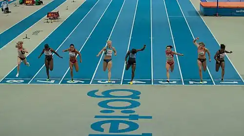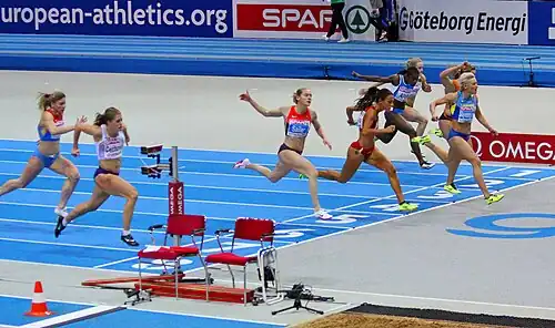 The final was held at 18:15.[6][7] The initial winner of the final, Tezdzhan Naimova, tested positive for the banned steroid drostanolone during the competition. In September 2013, she was officially stripped of her 2013 European Indoor Championships 60m title and banned for life from athletics. Ukraine's Mariya Ryemyen, who came second in the Gothenburg final, was declared the gold medalist of the 60m event, with France's Myriam Soumaré taking the silver medal and Bulgaria's Ivet Lalova the bronze.[8]