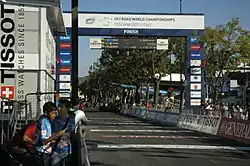 Tickets for crucial points of the course in Florence and Fiesole could be bought in advance. Ticket prices ranged from 20 Euro to 100 Euro for seating near the finish line of the men's road race.[3] Related to the Championships, many events were organized including expositions, exhibitions, a cyclosportive, and the Bicycle Film Festival.[4] Poste italiane made a stamp dedicated to the Championships in 3.290,000 pieces and Chianti Classico produced wine bottles with special Championships labels.[5][6]