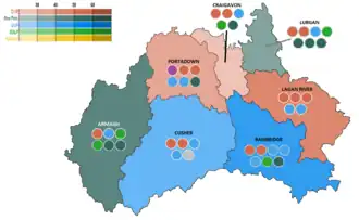 Armagh City, Banbridge and Craigavon 2014 Council Election Results by DEA (Shaded by plurality of FPVs) |