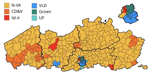 The incumbent government parties N-VA, CD&V and sp.a would have a large majority; it was however not expected that sp.a and N-VA will be together in a coalition.