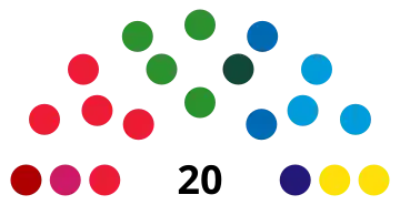 Last election 6 seats, 24.4% 2 seats, 11.0% 4 seats, 18.8%